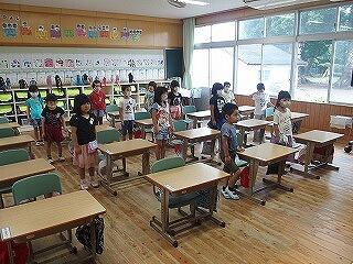 学校におきましても、昼休みから5時間目にかけて職員が下校時の通学路や河川の安全確認を行い、5校時授業の1年生から4年生までは下校時に、体育館に集め、安全指導を行った後、近所の児童を集団にして下校させました。6校時授業の5、6年生も同様の対応を行いました。
