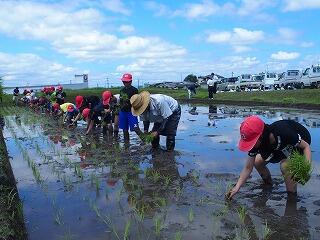学習支援ボランティアの松山さん御夫妻、谷口様、JA山之口の皆様、JA青年部の皆様、保護者の皆様、多くの方々の御協力で田植えをすることができました。事前の準備から当日の御指導まで、丁寧な支援をしていただきました。ありがとうございました。