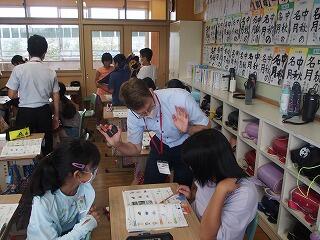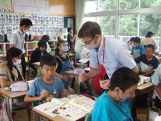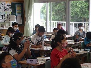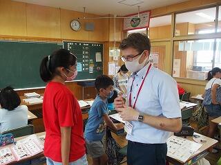 今日は6年生の外国語科の学習がありました。4月に紹介したALTのリチャード・ベッカー先生と一緒に学習しました。分かりやすい英語で、みんな楽しく学習していました。今日の学習は「夏休みの思い出を伝え合おう。」(英語で)という学習でした。
