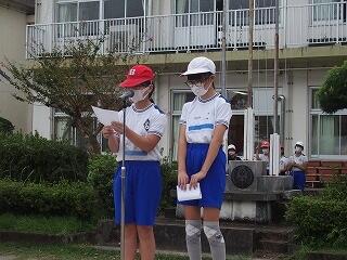 次にリーダーによるエール交換を行いました。短い練習時間でしたが、しっかりに練習を重ねていて、声の大きさ、動きともに素晴らしかったです。これから、さらにレベルを上げて本番を迎えることと思います。