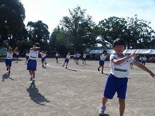 今日は、先週、雨のため延期になっていた秋季運動会の予行練習を行いました。開閉会式や団技、表現、徒走、リレー、応援をほぼ本番バージョンで行いました。併せて、5・6年生の係の動きを確認しました。どの種目も順調に練習が進んでいます。