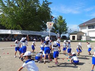 そして、昨日の予行練習で実際に使わせていただきました。練習ではポートボール台を使用していましたので、子どもたちもこれまで以上に誇らしげで嬉しそうでした。ありがとうございました。