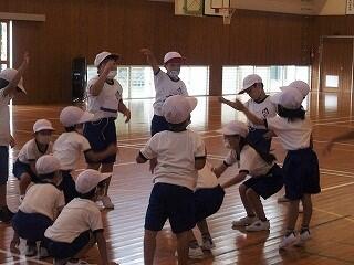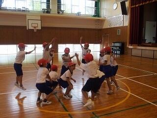 表現の練習の後に、団技「玉入れ」の練習をしました。流れの確認でしたので、エア玉入れでした。