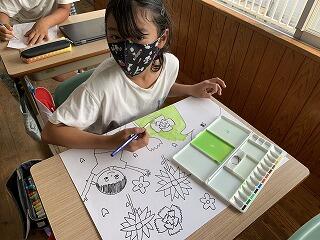 ネームペンで一つ一つ線をなぞり、それができたら筆を上手に使って、丁寧に色を塗っていきます。