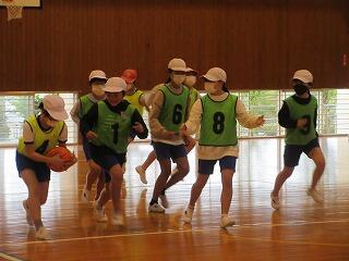 6年生になってバスケットボールの学習の2時間目だそうで、ボールの感覚になれるための練習段階です。