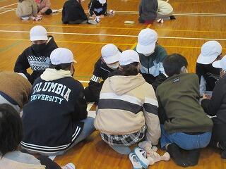 スポーツタイムが終わった後、その場で反省会をしている学年がありました。前回よりどれだけ記録が伸びたか、どうしてよい記録を出せるようになったのか意見を出し合っているようでした。