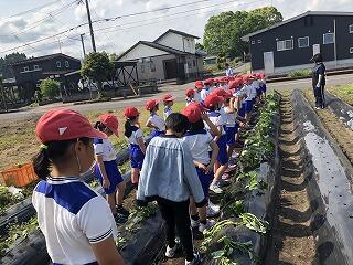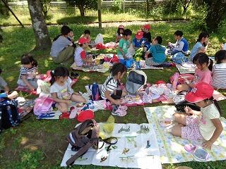 5月24日(金)に春の遠足に行きました。山之口学校給食センターを見学しました。給食を作っているところを見たり、食べ物についてのお話を聞いたりしました。その後、飯起公園で遊んだり、弁当やおやつを食べたりしました。天気がとてもよくて、楽しく過ごせました。