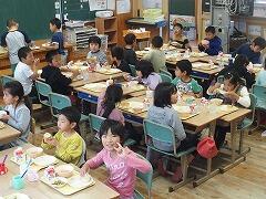 体育の授業ではボールゲームを、生活科では山之口公民館見学、音楽では歌ったり踊ったり、給食、昼休み、掃除も一緒にしました。