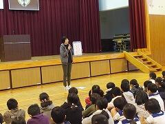 作文は本校の児童が書いた「みんなちがって みんないい」という題名の作文でした。外国人の友達、転入してきた友達、障がいのある方との出会いを通して、自分を振り返り、「これから、私たちは、多くの人と関わりながら生きていきます。みんなが幸せに過ごしていくためには、自分との違いを受け入れ、自分の言動に責任をもち、相手を尊重することが大切だと思います。」と、これからの自分の生き方を考える言葉で結ばれていました。