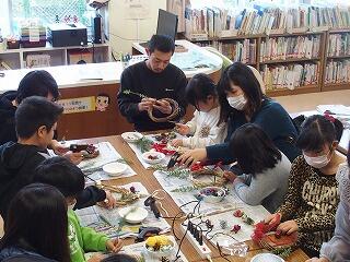 今日は家庭教育学級がありました。今回は「クリスマス・リース」を親子でつくりました。
