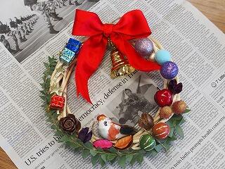 講師の先生が、多くの素材を準備してくださり、一人一人が世界に一つだけのクリスマス・リースをつくりあげました。