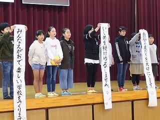 担当の先生の話では、「『安心』して過ごせる学校、『安全』に生活できる学校をみんなでつくっていきましょう。そのためには、困ったり、いやなことがあったり、つらかったりしたら『相談』をしてください。自分を大事にすること、友達を大事にすることが大切です。」という話でした。今月の山之口小の生活目標は「やさしさと思いやりの心を育てよう!」です。