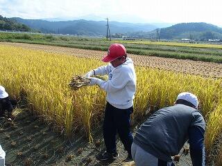 今年は掛け干しで乾燥させます。昨年よりさらにおいしい餅米になることと思います。来週20日は脱穀作業です。