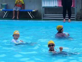 始めは、顔を付けるのもやっとという子どもたちもいましたが、今では、伏し浮きをしたり、バタ足で前に進んだりすることができるようになりました。