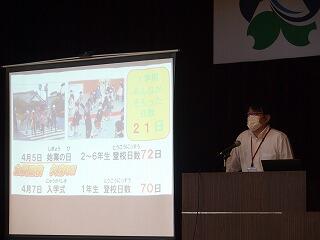 1学期の子どもたちの学校での様子をスクリーンに掲示しながら、学習や生活、健康安全面について振り返りのお話や楽しい夏休みにするためのお話がありました。詳しくは、本ホームページのタイトル下の【学校便り】ー[R3.7月号]をクリックして御覧ください。