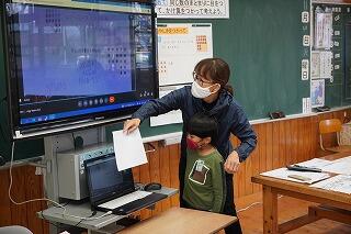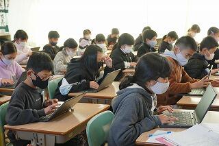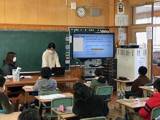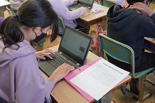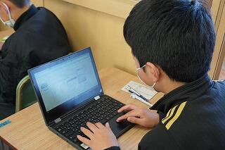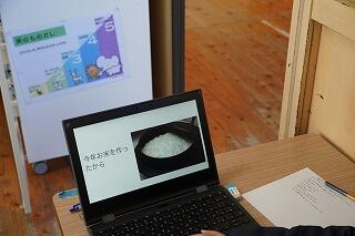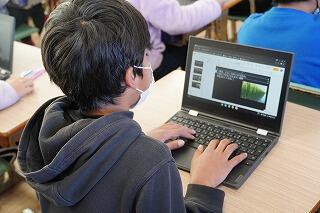 発表では、一人一台端末を使って、分かりやすく伝えようと各自が工夫しながらプレゼンテーションしていました。発表者は、自分で調べて整理したことで、発表後の質問にも自分の言葉でしっかり答えることができていました。