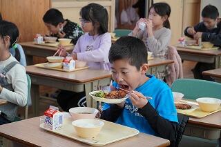 お肉が大好きな子どもたちですが、まずはその大きさにびっくりしていました。いつも以上に今日は「おいしい!」「ごはんが、2杯はいける」「最高!」と笑顔で話してくれました。