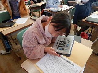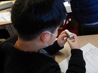 3時間目は、教室で普段使っている時計や郵便物、CD等を触らせていただきました。「なんか知ってる時計と違う。」「点字がある。」「専用のラジオだ。」と、つぶやく声が聞こえてきました。