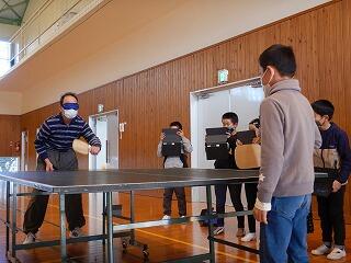 体育館で卓球を一緒にしました。音がなる卓球ボールでラリーをしました。長友さんの上手にプレイされる姿に子どもたちも驚いていました。子どもたちは、学習のまとめをするために、動画や写真を撮影していました。