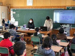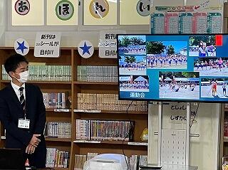 【麓小学校の2年生の先生が授業をしてくださいました】【カメラに向かって学校紹介をしました】