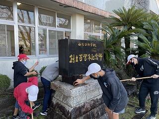 今日の朝はとても寒かったのですが、学校玄関等の汚れをデッキブラシでボランティア清掃してくれました。
