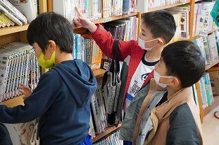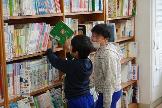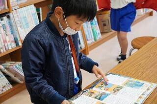 1年生の貸出の様子です。借りたい本がたくさんあってどれにしようかと迷っている子、これ面白いよと友達に教えている子、、さっそく借りて、待ちきれずに、読んでいる子・・・、みんな楽しみにしていたようです。