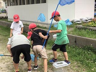 7月12日(火)に2年生は生活科で夏の生き物を校内で探しました。ハグロトンボを見つけたり、草むらの中からバッタやかまきりなどを見つけたりしては、「わあー!いたよ!」「つかまえたよ」などと言いながら子どもたちは目をキラキラと輝かせて活動していました。