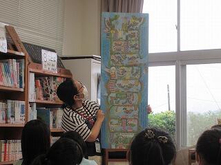 図書館サポーターの津曲先生が1年生によく読み聞かせをしてくださいます。おかげさまで1年生は読書が大好きで、図書館の本をよく借りて読んでいます。