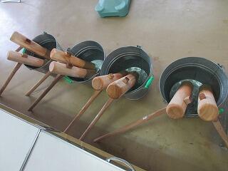 餅つき前日に準備したものです。5年生もがんばりましたが、保護者も来て手伝ってくださいました。(写真の隅っこに写っている方がいらっしゃいますがわかりますか?)