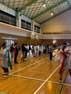 11月に、民俗芸能祭に向けて体育館で4回ほど練習をしました。