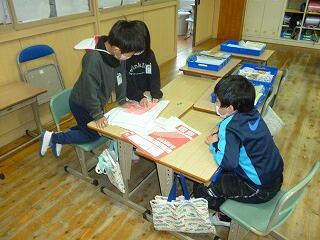11月のある日、4年生が、とび出す仕掛けが楽しい「ポップアップカード作り」にチャレンジ中。