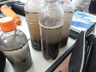 ではなく、「いろいろな大きさの粒(小石、砂、土)と水を入れて振ったものを置いておくとどうなるか」というきちんとした学習活動です。