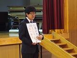 今日は山之口学校給食センターの栄養士の先生に給食についてのお話を校内放送でしていただきました。
