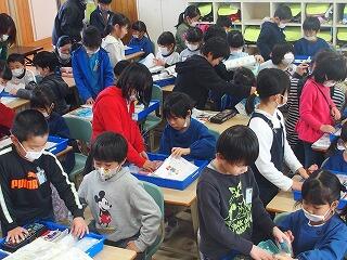 今日は山之口地区3つの小学校(富吉小、麓小、山之口小)の2年生が山之口小に集まって、1校時から5校時まで一緒に学習しました。給食や昼休み、掃除も一緒にしました。本年度3回目ということもあり、子供たち同士とても仲良くなっていて、楽しく学習することができました。