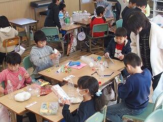 本日の時間割は、1国語、2・3図工、4算数、5音楽でした。下の写真は、2・3校時の図工の時間です。単元名「ピコリン星ゆめステージ」で、一人一人が自分の『ピコリン星人』をつくりました。