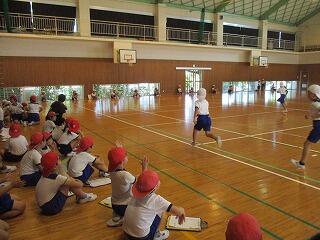 「○○さん、がんばれ。」「まだまだ、いけるよ。」と、たくさんの応援の声が体育館中に広がりました。みんなの