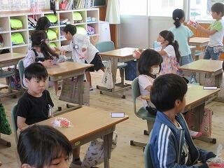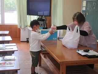 「袋を開けると、なくなったり友だちのと間違えたりするといけないから持って帰って、家の人とゆっくり見てください。」