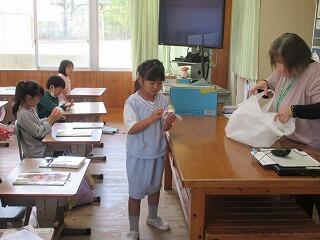 「あれ、ぼくのと色が違うね。」「手紙が入ってるね。」など意見交換会が行われていました。
