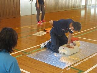 周りに2人以上の人(補助してくれる人)がいる場合、1人しかいない場合、補助が全くいない場合と場面毎の救命法を練習して講習会を終えました。