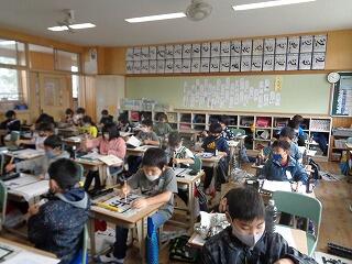 毛筆を授業で初めて学習した4月からすると準備や片付けも手際よくできるようになりました。