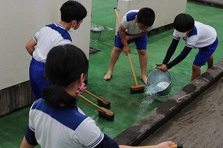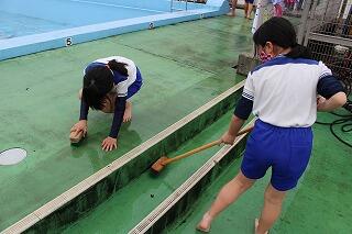 本日の4~6校時に、4・5・6年生がプールを清掃しました。