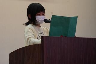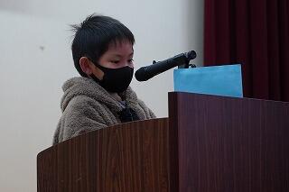 終業式では、2年生の代表児童が「2学期に頑張ったこと」や「3学期に頑張ること」について発表しました。