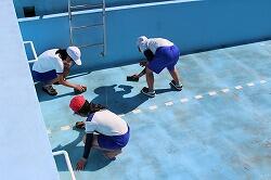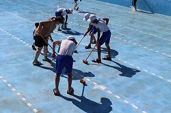 27日(金)の4~6校時に、4・5・6年生がプールを清掃しました。