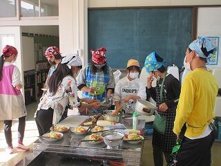 後片付けをしたら、できた料理を教室まで運んで、おいしく頂きました。