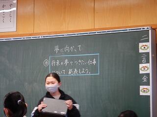6年生は、中学校入学を目前にして、自分が将来の夢について考えて、発表していました。