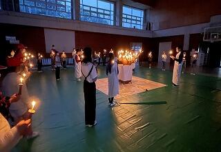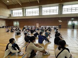 まずは入所式です。少し緊張したような表情で、施設の方の話を真剣に聞いていました。