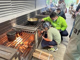 火の調節に苦戦しながらも、練習の成果を十分に発揮して、おいしいカレーを作ることができました。