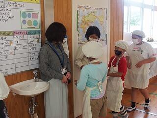 給食の準備の様子や給食を食べている様子を参観しに来られました。これからのより良い給食の提供に役立てる目的でした。