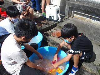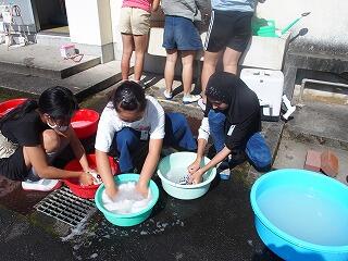 そんな中、6年生が家庭科の学習として、洗濯の実習をしました。