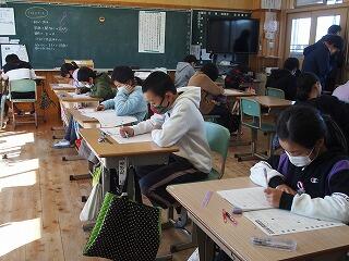 2校時が国語、3校時が算数でした。各教科40分です。普段のテストとは違い、量が多く、40分ぎりぎりまで問題を解いていました。集中して真剣に取り組んでいて、2教科終わると、ぐったりでした。第一声は「つかれた!」でした。